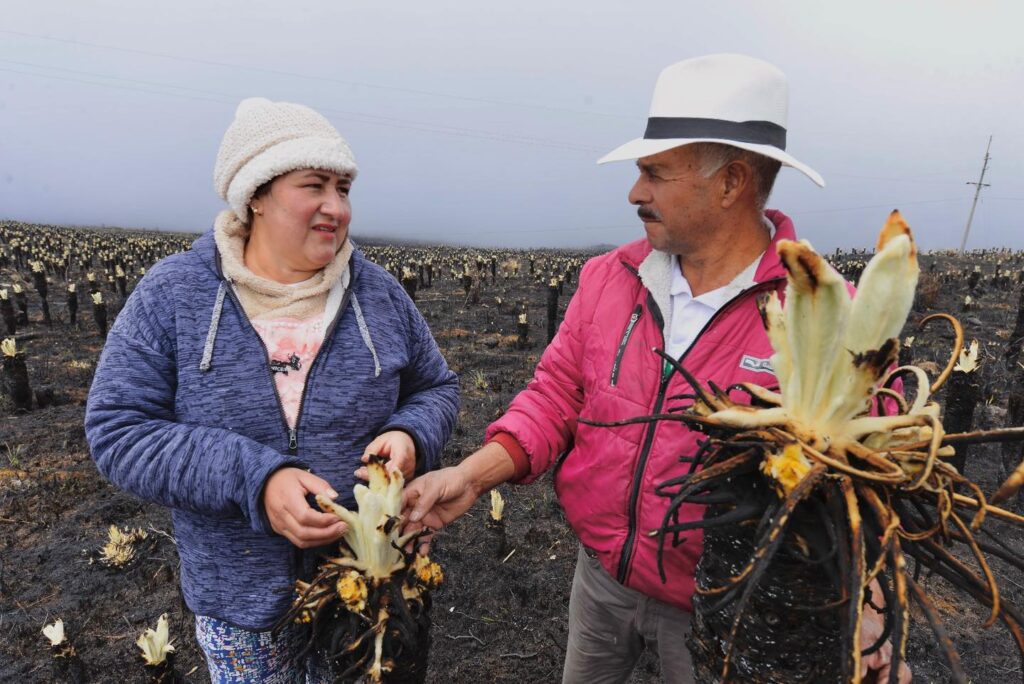 Yo creo que de aquí a diciembre, que es cuando florecen, ya se habrán recuperado casi por completo”… Una comisión de la UIS – Universidad Industrial de Santander llegó hasta el famoso cerro “El Picacho” del páramo de Berlín, ubicado en el municipio de Tona, Santander, allí don Orlando Velandia, campesino de la región, les contó que está feliz porque los frailejones renacieron entre las cenizas tras el voraz incendio que afectó la zona recientemente.